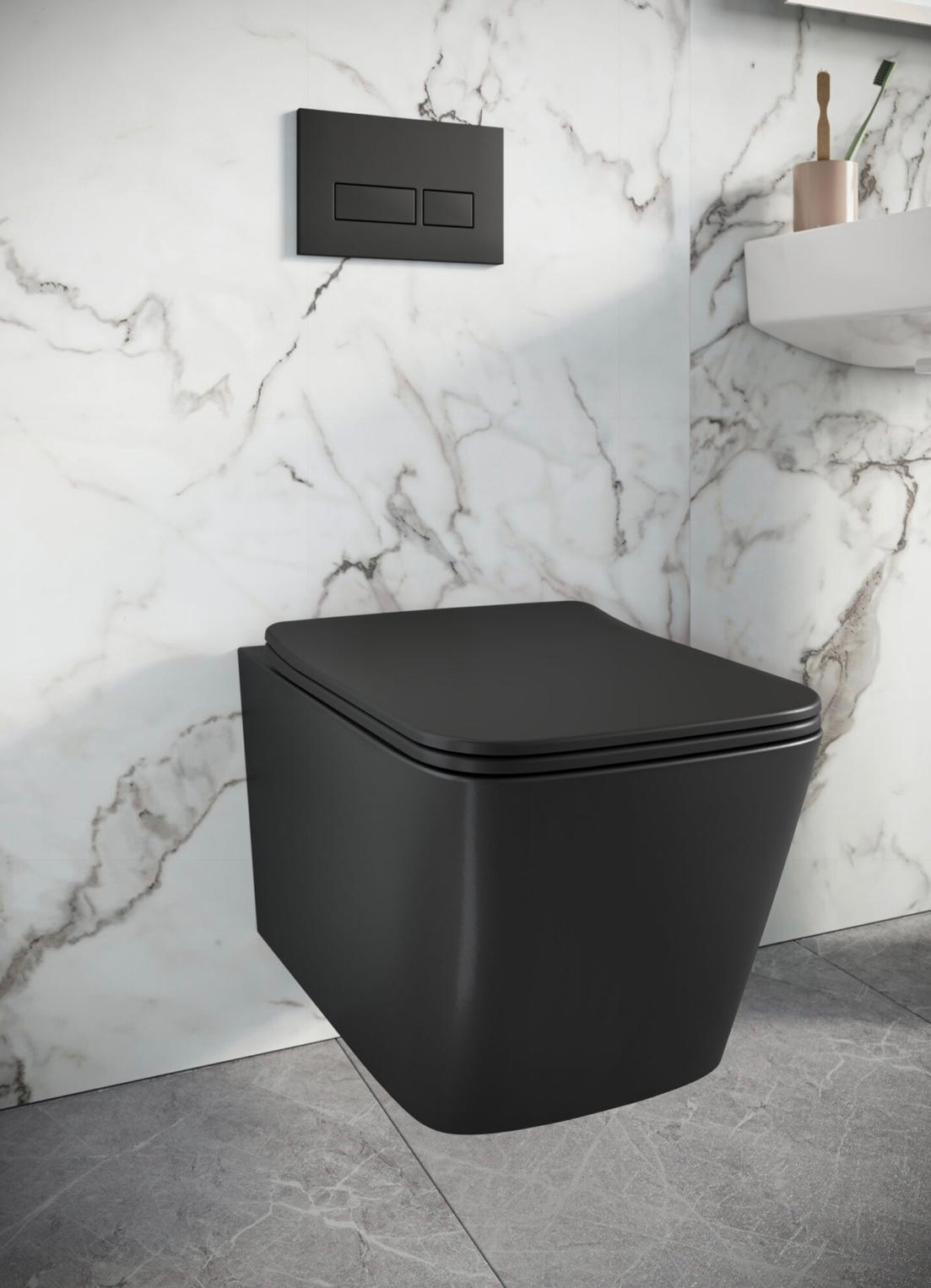 Contemporary and versatile, the Riviera wall hung pan collection is perfect for any modern bathroom. Riviera is available in matte black and white with soft square and round design options.